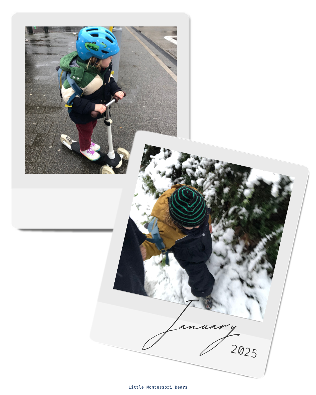 This month we’ve also had snow, which Arthur was extremely excited about! That said he also discovered that behind the beauty of frosted leaves and the crunching grass under hi feet, there is also the slippery aspect of ice that he hadn’t expected… So he also became very cautious.